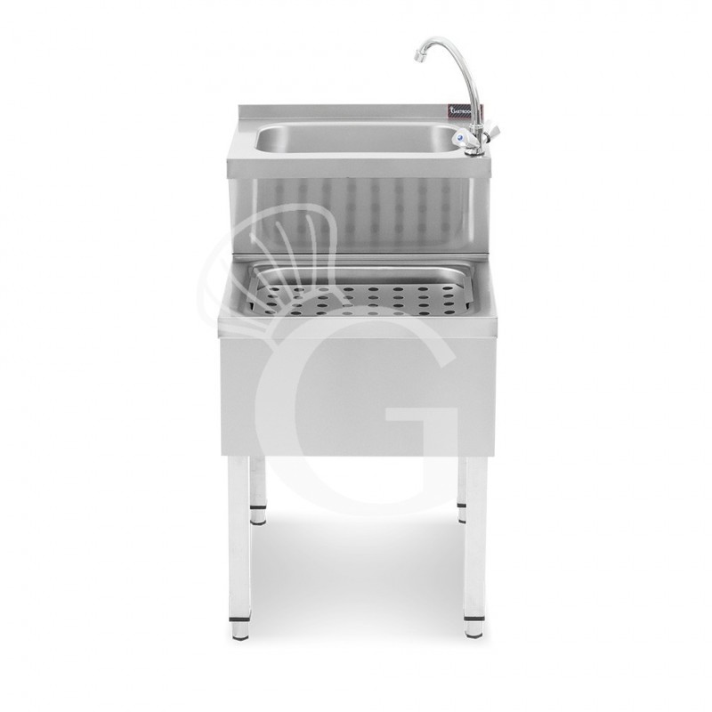 Gracias a su doble cubeta de acero inoxidable con desagüe independiente y rejilla porta-trapos, este lavamanos profesional permite optimizar la gestión de la higiene y las operaciones de lavado. La estructura de acero inoxidable AISI 304 asegura resistencia a la corrosión y facilidad de limpieza, lo que lo convierte en una opción ideal para entornos que requieren altos estándares de higiene.