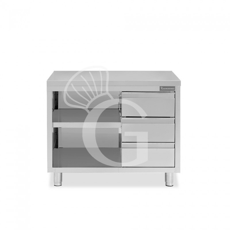 Mesa contrabarra de acero inoxidable 3 cajones en el lado derecho L 1200 mm x P 700 mm x A 850 mm