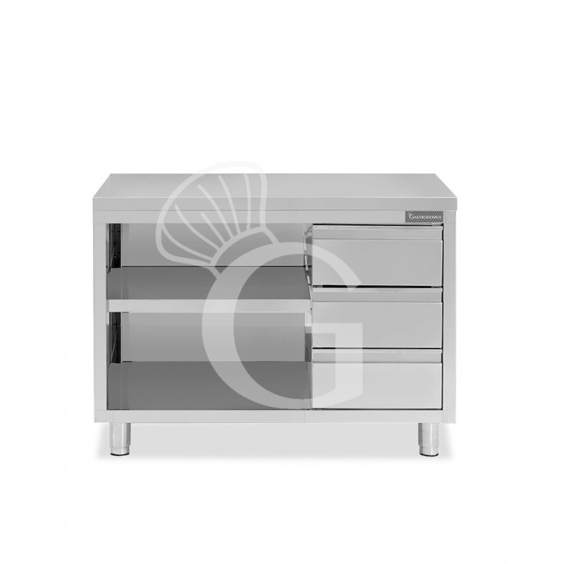 Mesa contrabarra de acero inoxidable 3 cajones en el lado derecho L 1500 mm x P 700 mm x A 850 mm