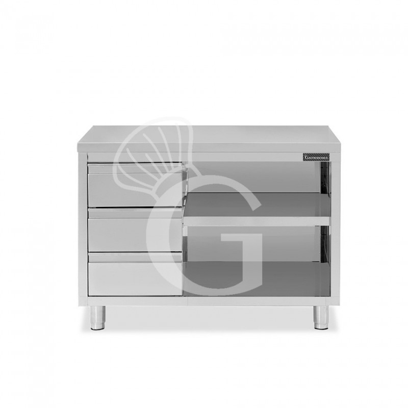 Mesa contrabarra de acero inoxidable 3 cajones en el lado izquierdo L 1500 mm x P 600 mm x A 850 mm