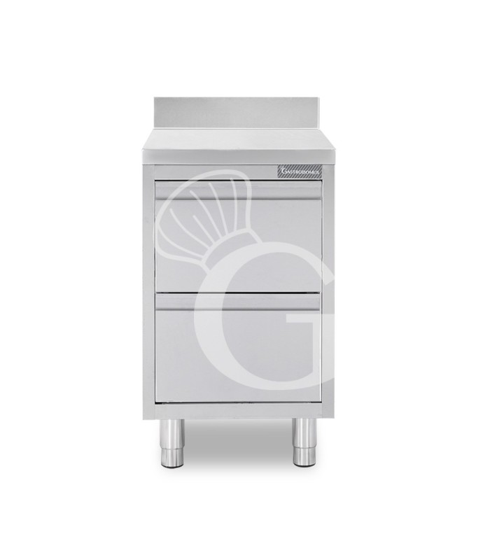 Cajonera de acero inoxidable con 2 cajónes y peto, L 500 x P 600 x A 950 mm.