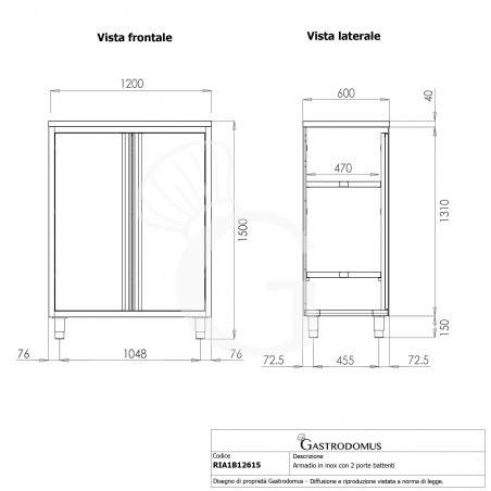 El armario cuenta con 2 estantes intermedios regulables en altura y 2 puertas batientes, ligeras y desmontables.
