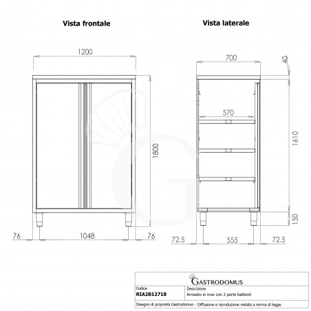 El armario tiene una robusta estructura de acero inoxidable 18/10 con acabado Scotch Brite.