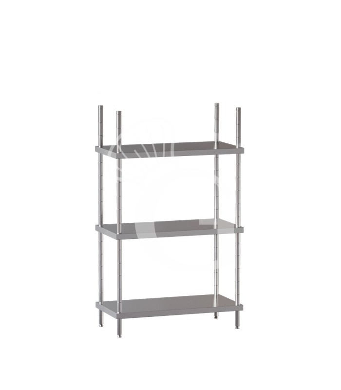 La estantería de pie tiene una estructura robusta de acero inoxidable 18/10 con acabado Scotch Brite.