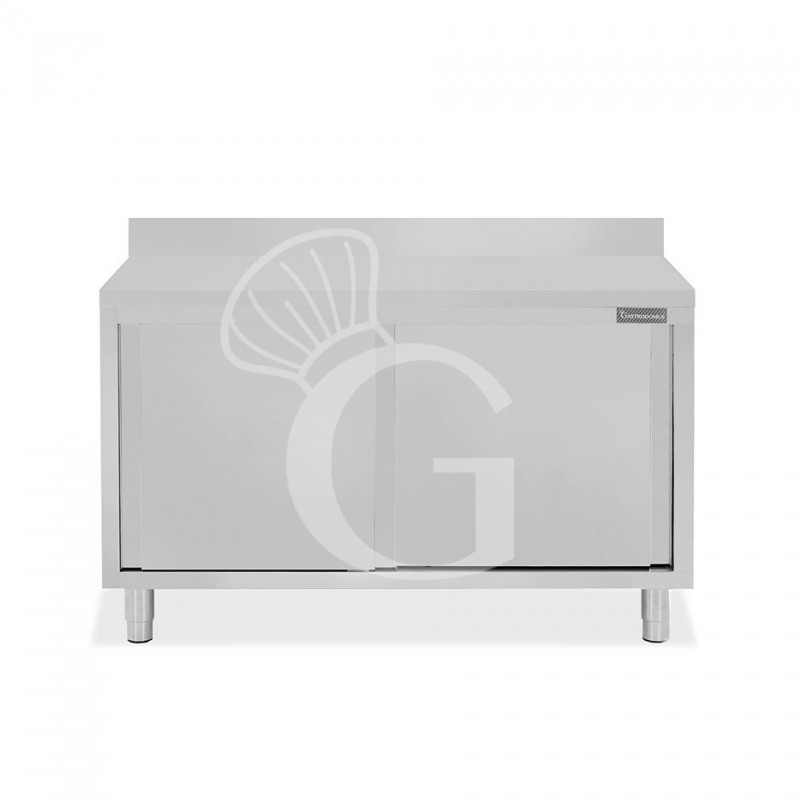 Mesa mural de acero inoxidable 2 puertas correderas y peto L 1400 mm x P 600 mm x A 950 mm