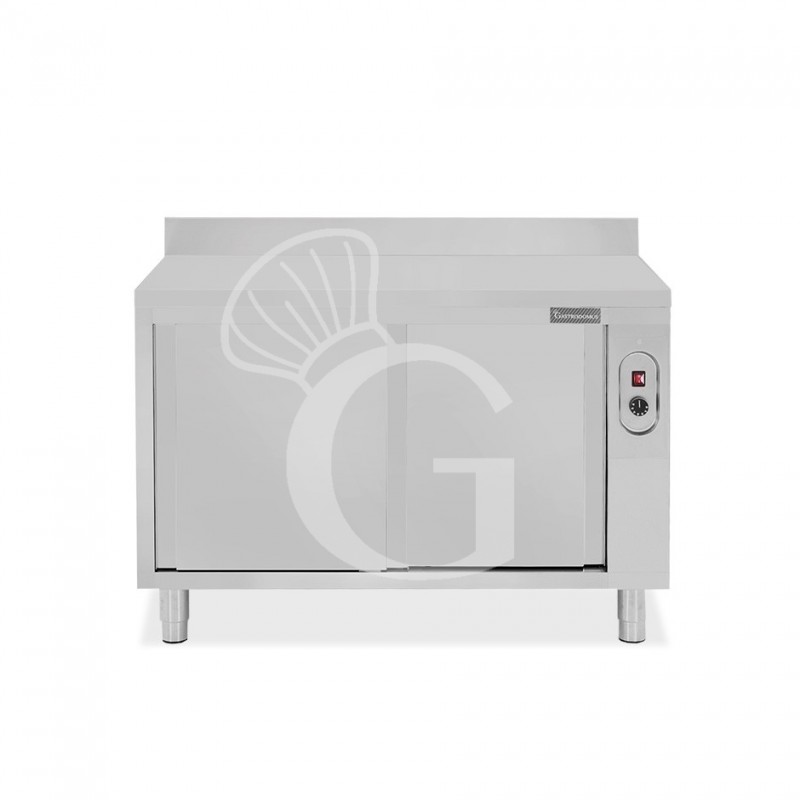 Mesa mural caliente con puertas correderas y peto de acero inoxidable L 1300 mm x P 600 mm x A 950 mm