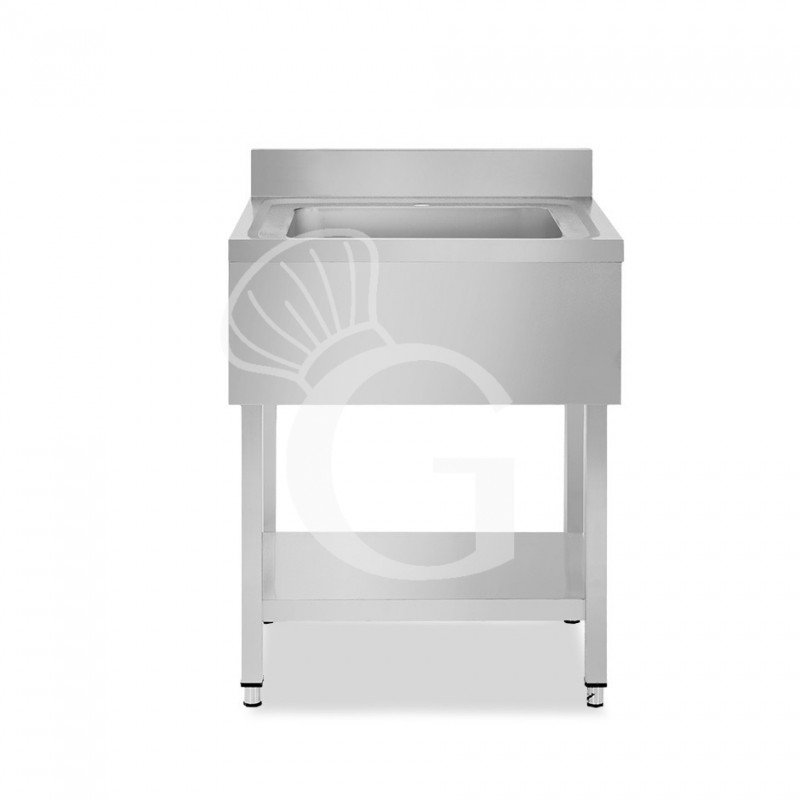 Fregadero con bastidor de acero inoxidable con 1 estante, peto trasero, 1 cubeta L 800 mm x P 700 mm x A 950 mm.
